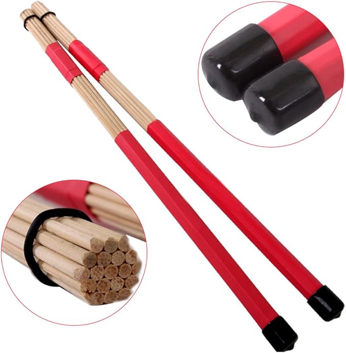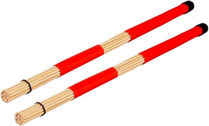 Hot Rods Rute Jazzドラムスティックブラシ竹製ドラムスティック。 (赤)