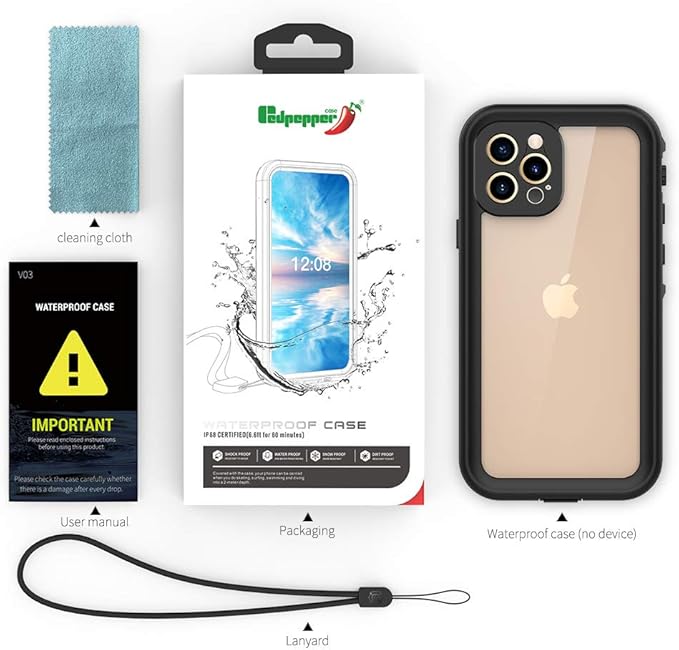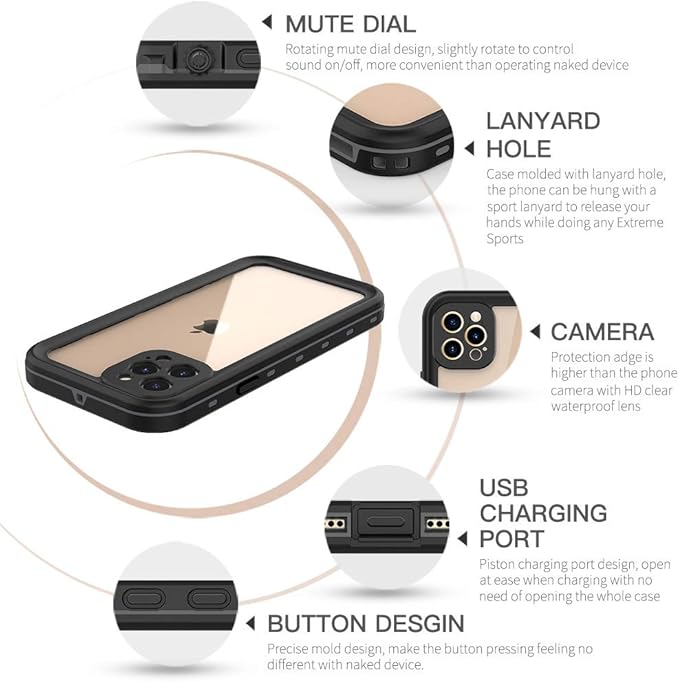 iPhone 12 Pro Max 防水ケース 6.7インチ DINGXIN IP68防水規格 指紋認証対応 防水 防雪 防塵 耐震 耐衝撃 アイフォン12プロ マックス ケース 防水カバー ストラップホール付き ワイヤレス充電対応 (iPhone 12 Pro Max, ブラック) | oioioichan