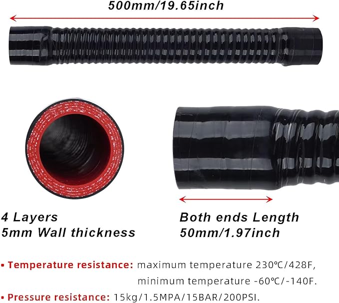 ID28-83mm プラスチックフレキシブルホース ターボエアインテーク用 高圧温度プラスチックジョイナーパイプ 500MM