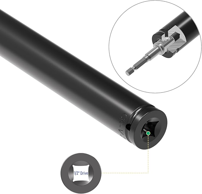 1/2インチドライブソケットアクセサリーセット 深さ18mm 6ポイントインパクトソケット 長さ8インチ 1/4インチ六角シャンクアダプター 熱処理 CR-V ディープインパクトソケットキット | oioioichan