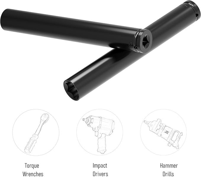 【素材】 熱処理されたクロムバナジウム鋼で作られており、強度と柔軟性を向上させ、高トルクの衝撃工具を扱うことができます。ソケットは研磨と電気泳動仕上げのソケット、ブラストとメッキで錆や腐食を防止します。