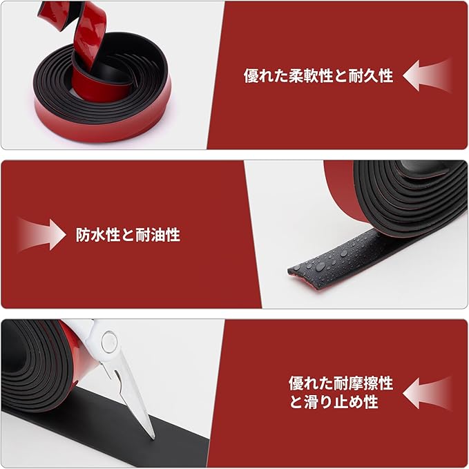 粘着性があるゴム板:このゴムシートは粘着テープが付属しており、保護テープを剥がしてすぐに取り付けることができます。とても簡単と便利なゴムロールです。