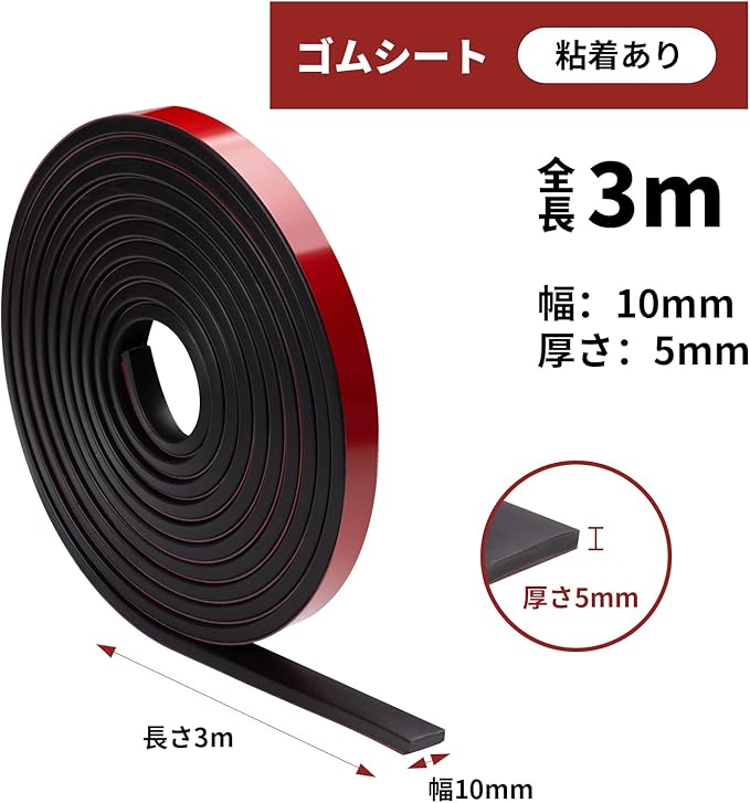 ゴムシート ゴムロール 振動吸収マット ゴム板 NBR 緩衝材 ゴム ゴムテープ 衝撃吸収材 DIY 防振マットゴムガスケット シーリングパッド 粘着付ゴムシート ゴムストリップ (厚さ5mmx幅10mmx長さ3m 粘着付き) | oioioichan