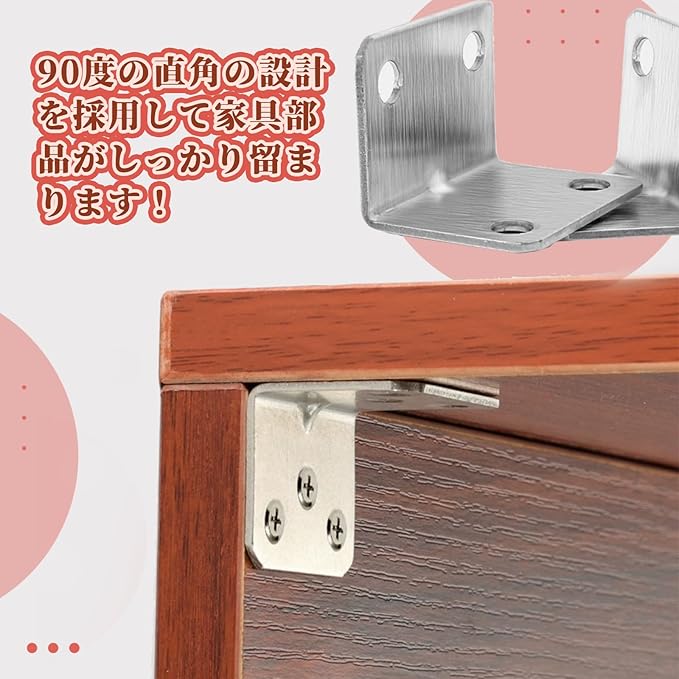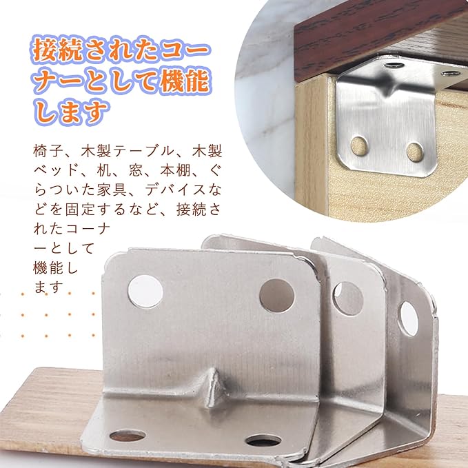 【特徴】90度の直角の設計を採用して家具部品がしっかり留まります!椅子、木製テーブル、木製ベッド、机、窓、本棚、ぐらついた家具、デバイスなどを固定するなど、接続されたコーナーとして機能します。