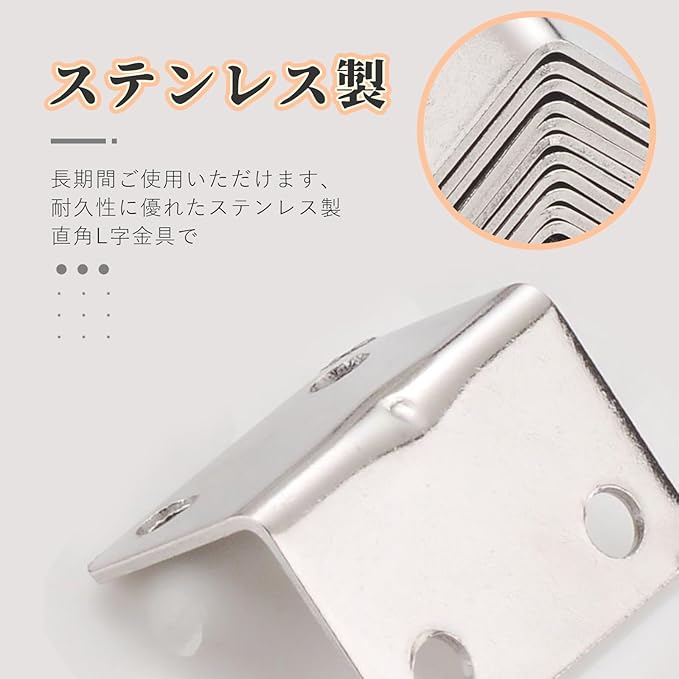 【ステンレス製】長期間ご使用いただけます、耐久性に優れたステンレス製直角L字金具で。
