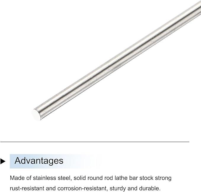 長さ: 100 mm/4 in; 直径: 2.5 mm/0.1 in; 素材: 304ステンレススチール; 色: シルバー; パッケージ内容: 6 x ステンレススチール丸棒.