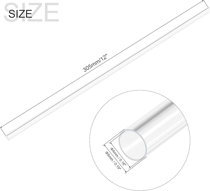 1 個の透明 PC 管包装;長さ:305ミリメートル;内径:4ミリメートル;外径:5ミリメートル