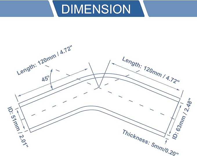 [サイズ] 度数: 45 、長さ: 120mm / 4.72"、厚さ: 5mm / 0.20"