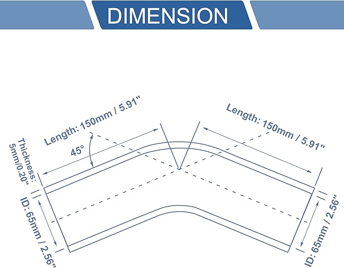 [サイズ] 内径: 65mm / 2.56"、角度: 45度、長さ: 150mm / 5.91"、厚さ: 5mm / 0.20"