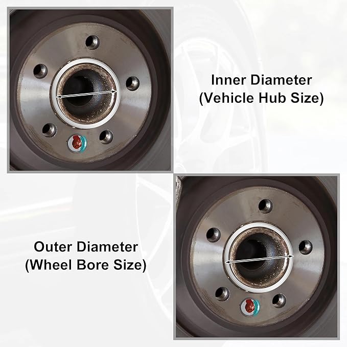 2 つの測定値のうち大きい方 (例: 70.1 mm) が外径です。これはホイールのセンター ボアと一致する必要があります。
