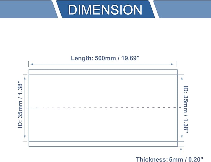 [サイズ] 内径: 35mm / 1.38", 角度: 0 , 長さ: 500mm / 19.69", 厚さ: 5mm / 0.20".