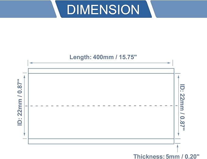 [サイズ] 内径: 22mm / 0.87"、角度: 0 、長さ: 400mm / 15.75"、厚さ: 5mm / 0.20".