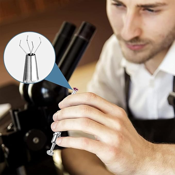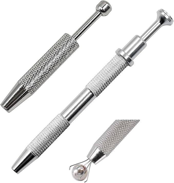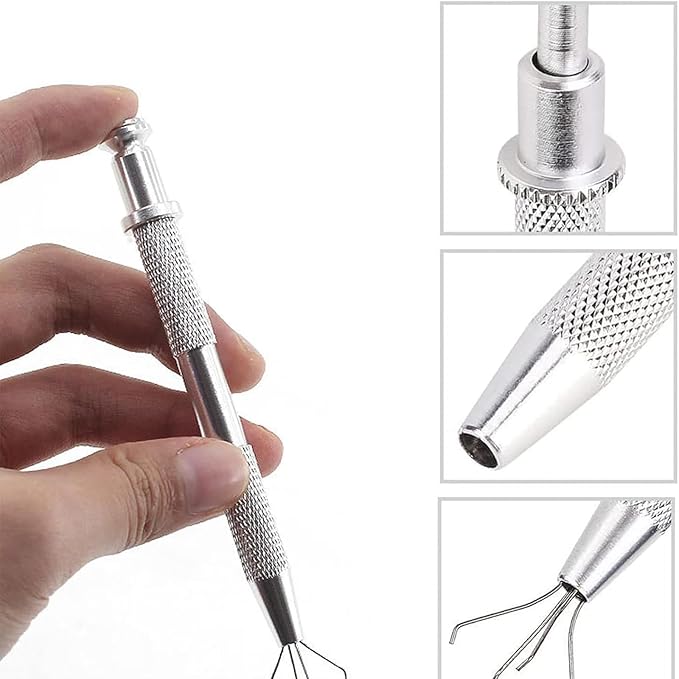 【使い方】ボールグラッパー 先端の先端を押さえるとフック付きのワイヤーが4本伸び、ワイヤーが宝石を挟んでしっかりと宝石をロックします。