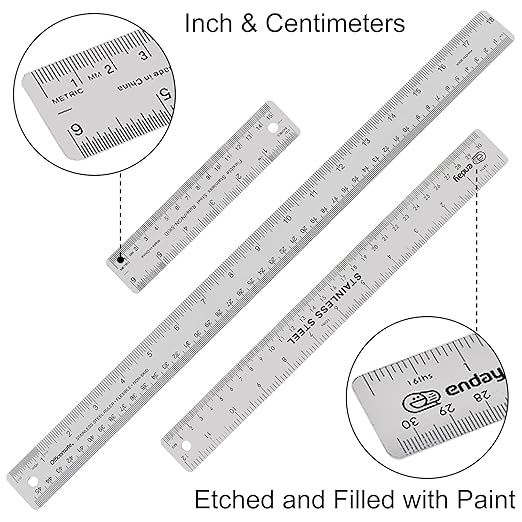 【インチとセンチメートル】定規にはインチとセンチメートルの両方のスケールが刻まれており、国際的なプロジェクトや異なる測定単位が必要な作業に便利です。