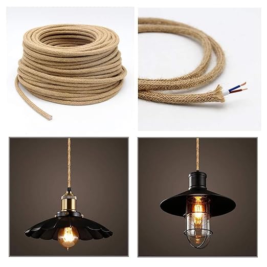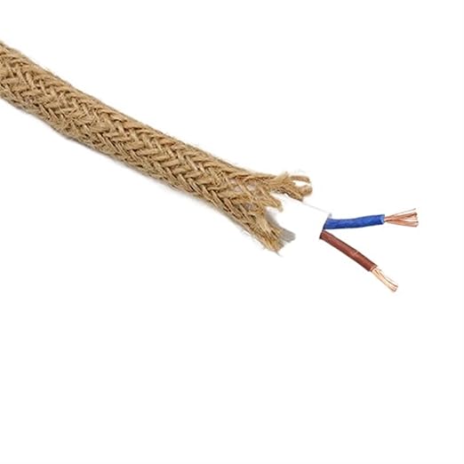 トランキング ソリッド レトロペンダントライト電線、銅ヴィンテージ麻ロープライトコード、2コード0.75mm編組フレキシブル電線 コネクター 織機 (Color : Beige, Size : 5meters) | oioioichan