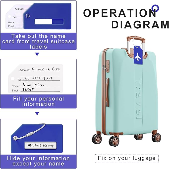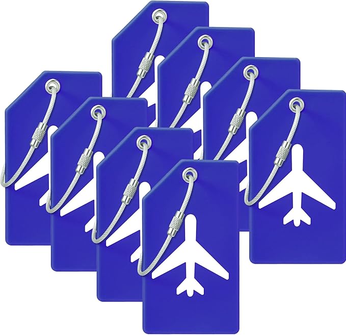 8ピース ラゲッジタグ シリコンラゲッジスーツケース タグ 旅行荷物名札 ネームカード 部分的なプライバシーカバーとステンレススチールループ付き 安全に留められます (ブルー) | oioioichan