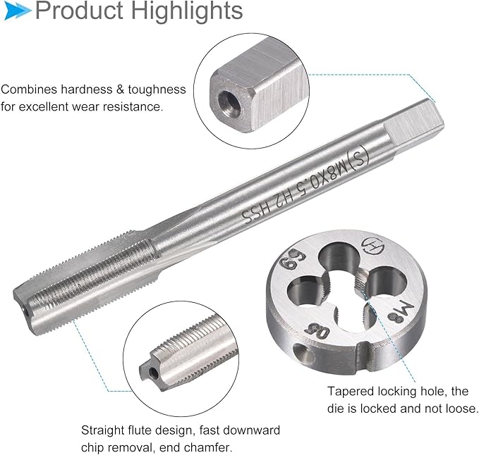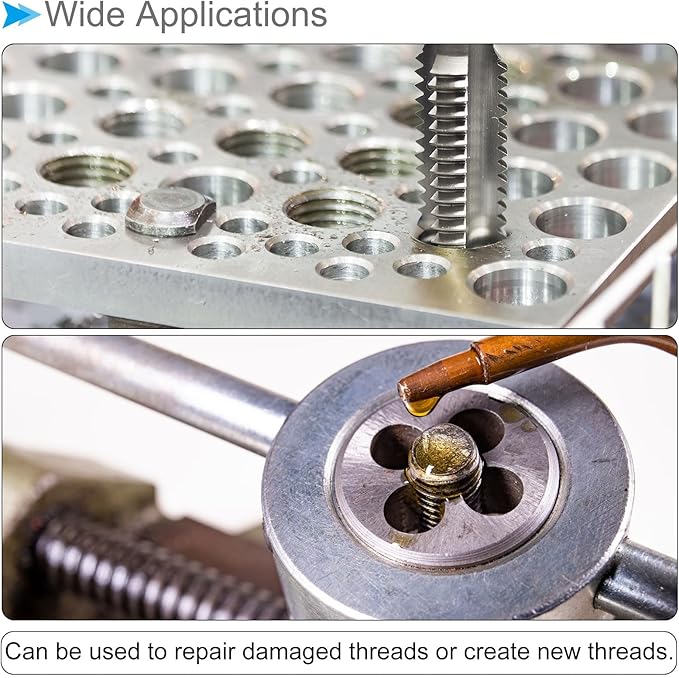★ 使いやすい --- 工作機械タップの設計は、まっすぐな溝と迅速に下方向に切りくずを排 出して、タッピングマシン、ボール盤、CNCフライス盤に适しています。ダイを緩まないようにしっかりとロックし、ダイハンドルまたは調整可能なレンチを使用して圧力を加え、ダイを部品の周りに回転させて、必要なねじ山を作成します。