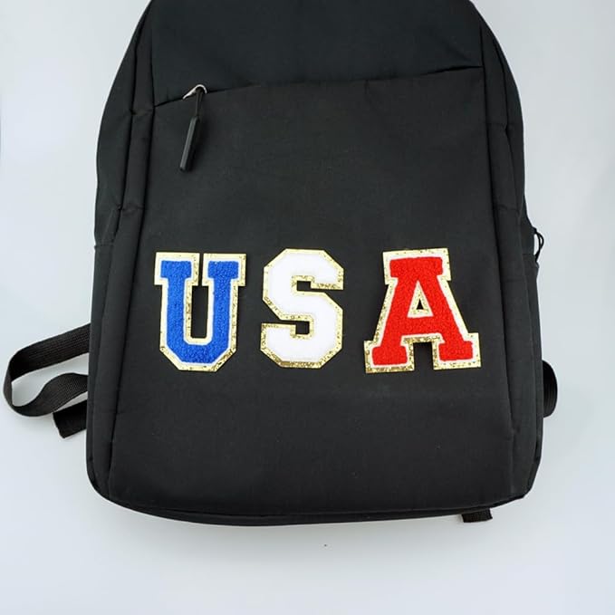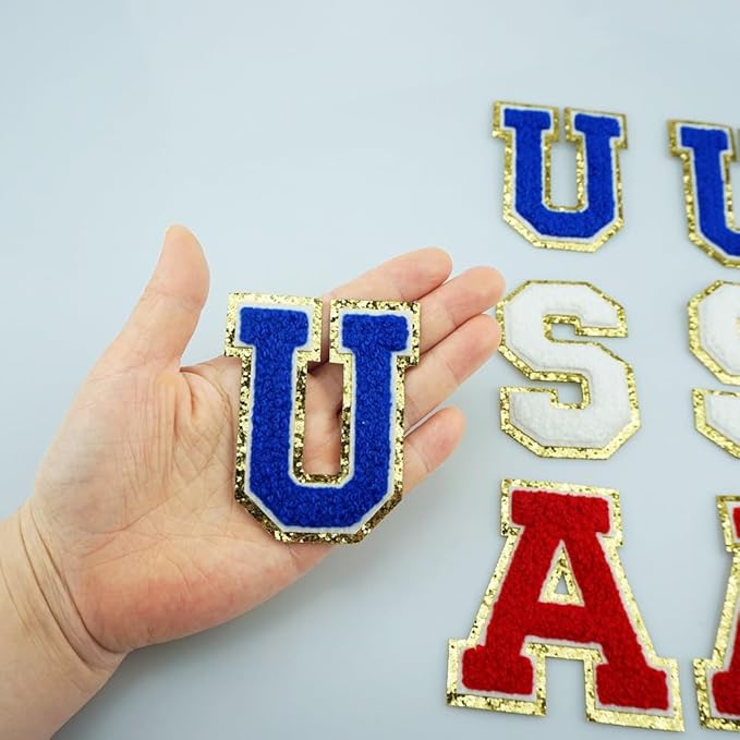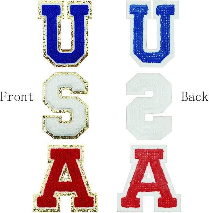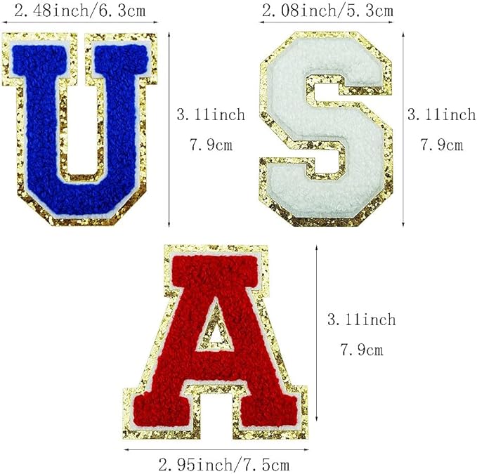 USAパッチパッケージ内容:9個 X USAレターパッチ。 (青文字U3本、白文字S3本、赤文字A3本を含む)