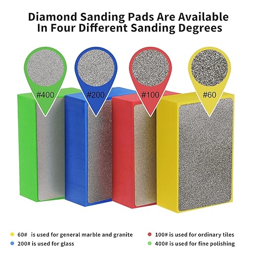 ダイヤモンド研磨パッド 4点セット ダイヤモンドサンディングパッド ハンドサンディング セラミックス ガラス コンクリートタイル 大理石 花崗岩 (60#、100#、200#、400#) | oioioichan