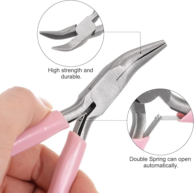(ハーフィントン) HARFINGTON ミニベントノーズプライヤー 4.5インチ 歯なしカーブプレシジョンプライヤー ピンクプラスチックハンドル付き DIYクラフト ジュエリー製作用 | oioioichan