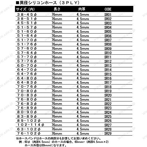 自動車インテークパイプ(エア)専用です。その他の用途に使用しないでください。耐油性はありません。オイルや燃料ラインへ使用しないで下さい。