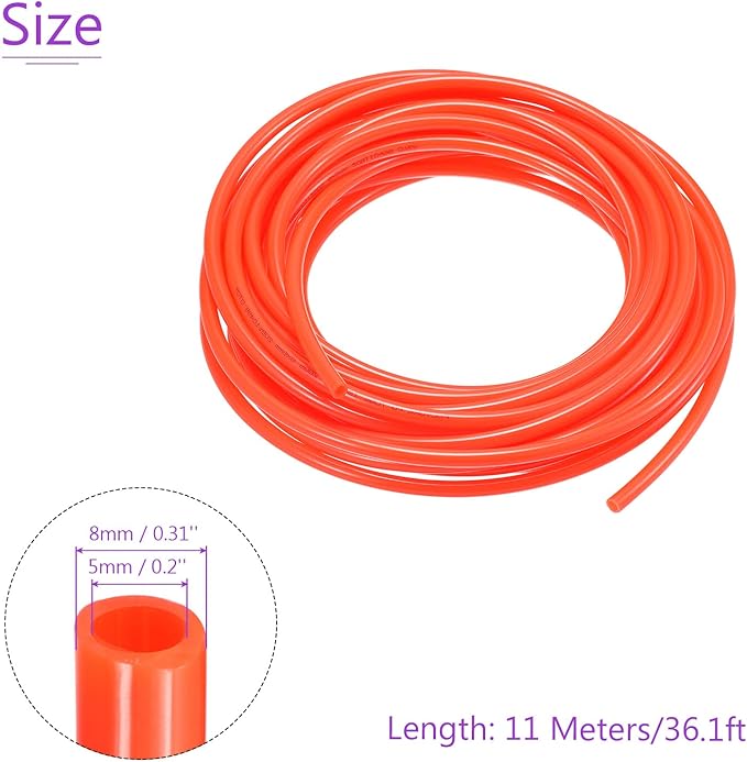 サイズ: ID x OD: 5 mm x 8 mm; 全長: 11 M; 空気圧エアPUホース1個。