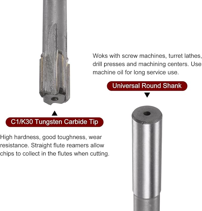 注意 - スクリューマシン、タレット旋盤、ドリルプレス、マシニングセンターなど、あらゆるタイプの機器に使用できます。 リーマーは常に清潔に保ち、マシンオイルと一緒に使用して長期間使用できます。 高品質のツールホルダーに保管してください。