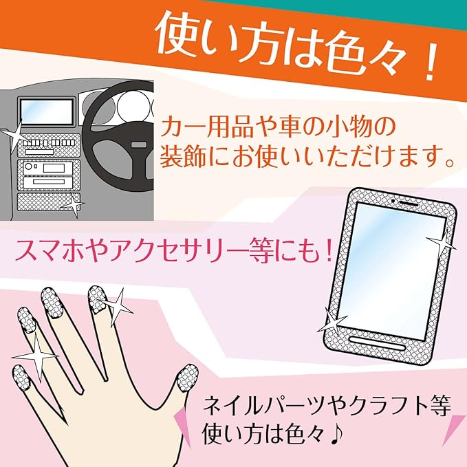 【特 徴】ネイルパーツやクラフト、デコレーションなど幅広くご使用いただける、パールタイプのラインストーンシールです。