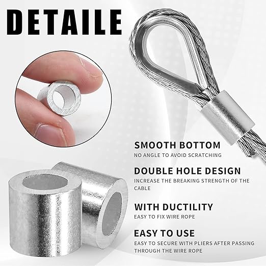 使用シナリオ: アルミ圧着ループスリーブは、ケーブル、物干しロープ、犬用ベルトなど、強力なケーブルを使用する場所に適しています。