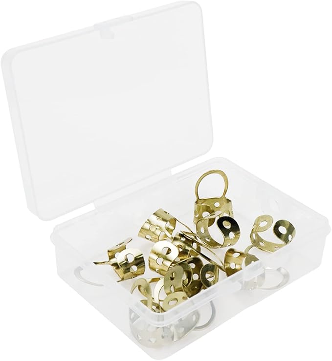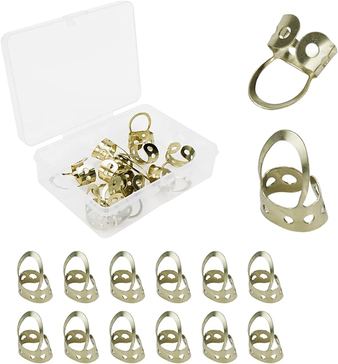 [パッケージ内容] ゴールドメタルフィンガーピック12個、収納ボックス1個。