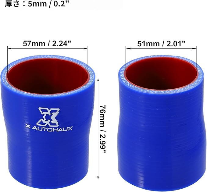X AUTOHAUX シリコンホース ストレート シリコンパイプ ラジエーターホース 内径51-57mm 長さ76mm ホースバンド付き 耐熱 耐寒 耐久 接続ホース エアクリーナー 接続 ストレート インタークーラーチューブ 車用 ブルー レッド 1個 | oioioichan
