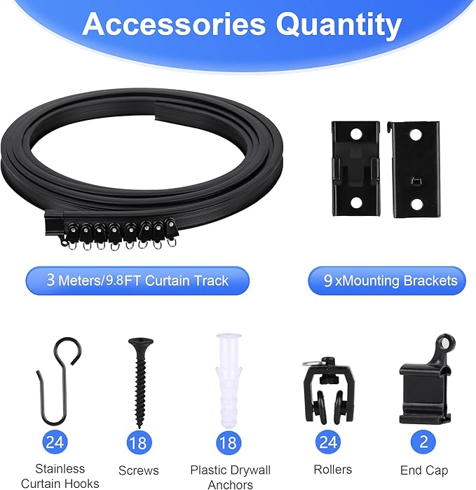 多目的: 天井の柔軟なカーテントラックは、どんな環境でも素敵に見えます。 天井トラックとトラックローラーにより、このカーテントラックは簡単に開閉できます。 部屋の仕切り、窓の飾りやベイ、シャワートラック、RV、トレーラー、キャンピングカー、または狭いスペースでスペースを最大限に活用し、瞬時にプライバシーを確保できます。